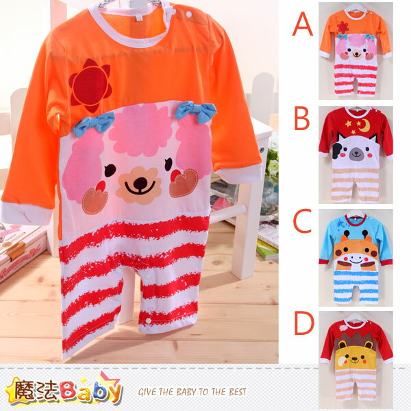 魔法baby童裝童鞋婦嬰百貨-寶寶連身衣~薄長袖連身包屁衣~嬰兒服飾~魔法Baby~k34042